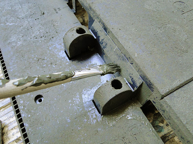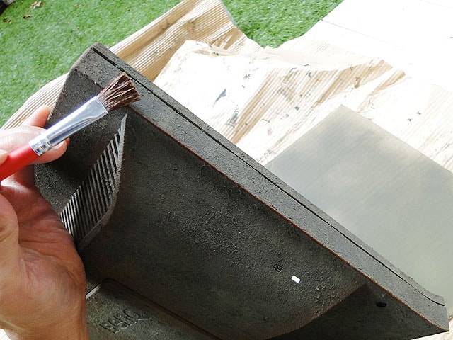こういうスポンジが届きにくいところは筆を使って塗ります