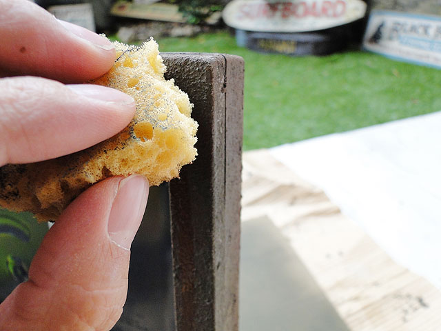 スポンジにラスティブラウンの原液のままを付けて