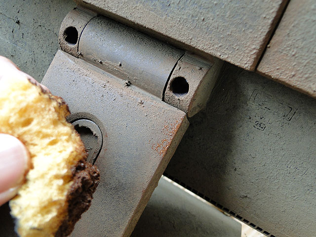 サビ塗装の塗料(ラスティブラウン)をスプーンで取り出します
