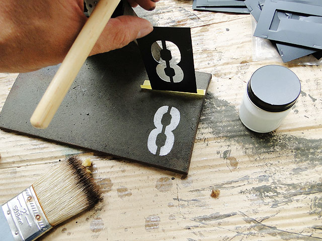 ステンシルプレートの上から叩きます