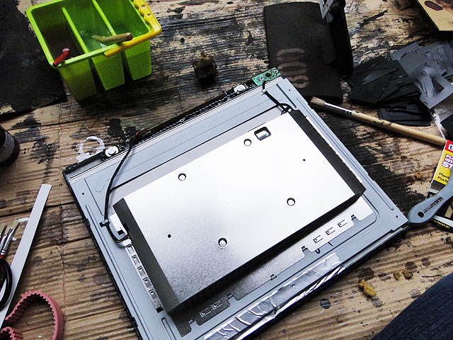 外した内部のモニターや基盤を取り付けて組み立てます