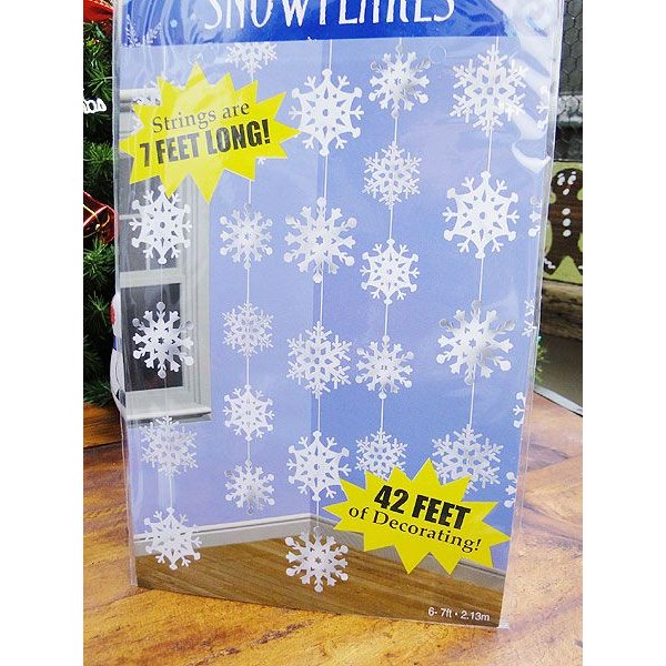 シーンを立体的に飾りつけできちゃうスノーフレークのストリングデコレーションです。