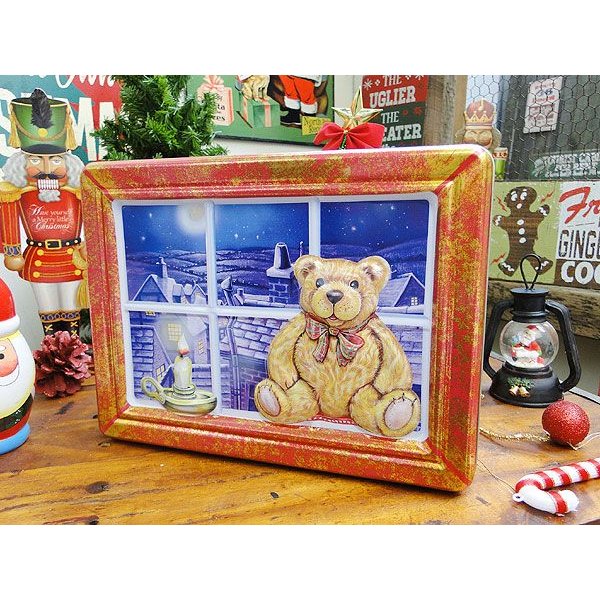 英国から届いたクリスマス仕様の機関車の形をしたブリキ缶です。