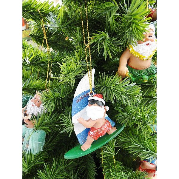 ハワイアン クリスマスオーナメント (ウィンドサーフィンサンタ)