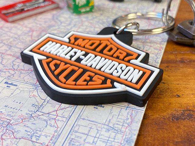 ハーレー乗りならキーにワンポイントアクセントでハーレー絡みのロゴ入りグッズを付けておきたいよね!