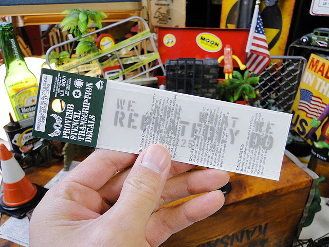このステッカーは文字だけが残る転写タイプなので、貼った後の見た目もすごくイイ感じなんです。身の回りの小物にミリタリー風の味付けをしたい時に、コレはズバリおすすめです!ヽ(^0^)