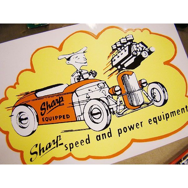 あまりのハイパワーチューンにエンジンだけが空を飛んでいく!いやはやユニークなデザインのノスタルジックステッカーです。レース系なんだけど、こういうシャレもしっかりとデザインに込めちゃうところが、アメリカ人の遊び心ってヤツ!だから、これを貼りつけてできあがる小物は、どこか愛嬌があって、愛情が沸いちゃうんだね!そんな訳で、無機質な見た目のツールボックスなんかをカスタムする時に、この1枚は良さそう!(o^∇^)oサイズ:横11cm×縦7.5cm(約)