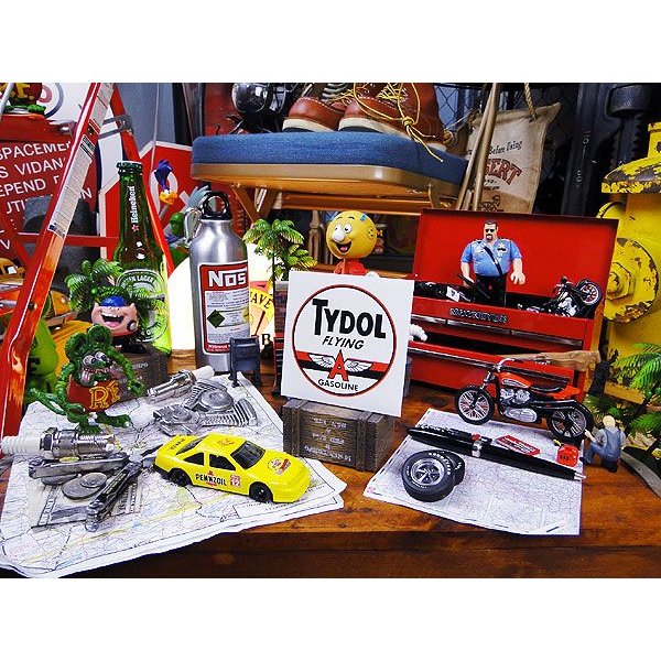 アメリカのフリーマーケットで古いツールボックスを見つけるとそこへベタベタと貼られてそうな年代物のヴィンテージステッカーを古めかしさそのままに復刻させたノスタルジック・ガレージステッカーです。シールの小傷やオイル汚れなんかをそのまま再現してあるのが特徴で、同じステッカーでもこれを貼るとヴィンテージライクに仕上がるって粋なヤツなんです。材質は紙素材で、ヴィンテージ感を出すためのコーティング等もしてません。例えば新品のツールボックスでもキャンディタワーで人気のサビ塗装の塗料を使って全体をエイジングした後に、これを貼ってさらにサビ塗装を施すと、もはや誰が見ても何十年前の道具箱って感じに仕上がるんです。まさに「自分で作るオールドアメリカ」ってヤツ!ステッカーの選び方ですが、いつもなら自分の好きなブランドで選んじゃうかもしれませんが、このステッカーの場合は複数を組み合わせた時の色合いでチョイスするとシブイのが完成しますよ!大好きなオールドアメリカの世界をオリジナルグッズにして楽しんじゃえ!( ̄ー ̄)ニヤリ☆