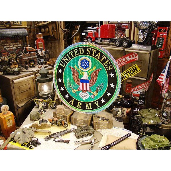 このサイズ、まさしくアメリカン級!30cmサイズのデッカイミリタリーステッカーです。これなら、家具やゴミ箱、ドアやガラスなどなど・・・・大きなモノでも一瞬でミリタリー仕様に変身させれちゃうってヤツです。ステッカーとひとえに言っても、このクラスのサイズとなると日本じゃまず手に入らないからね!しかも米軍のオフィシャルモノだからなおさらでしょ!シートは光を受けるとキラリと反射するプリズムタイプになっているので目立ち度も抜群です。普段目にするあの家具、あの場所にバシッと貼って米軍基地を再現してみてはいかが!(o ̄∇ ̄)o