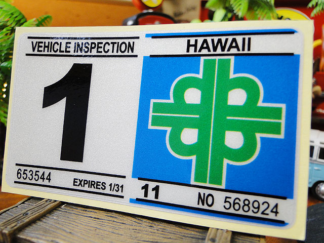 ハワイの車検バンパーステッカー レプリカ (1月)