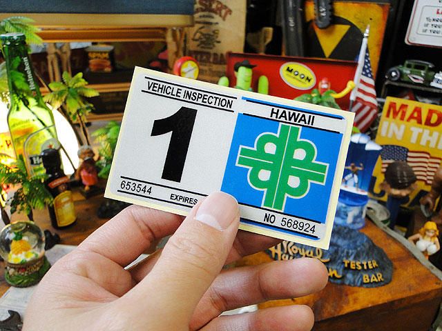 ハワイで走ってるクルマのリアバンパー部分に貼られる車検ステッカーのレプリカです。