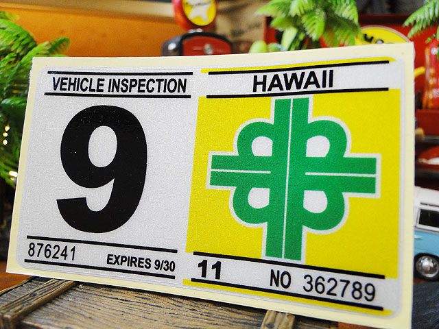 ハワイの車検バンパーステッカー レプリカ (9月)