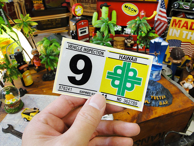 ハワイで走ってるクルマのリアバンパー部分に貼られる車検ステッカーのレプリカです。