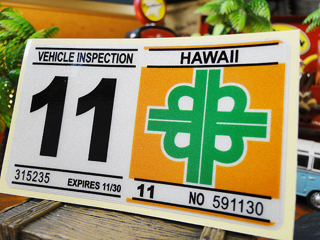 ハワイの車検バンパーステッカー レプリカ (11月)