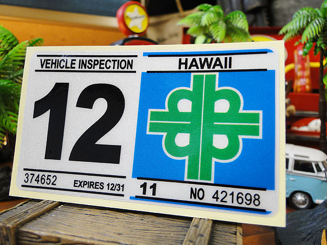 ハワイの車検バンパーステッカー レプリカ (12月)