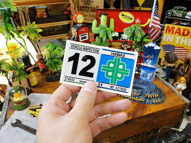 ハワイで走ってるクルマのリアバンパー部分に貼られる車検ステッカーのレプリカです。