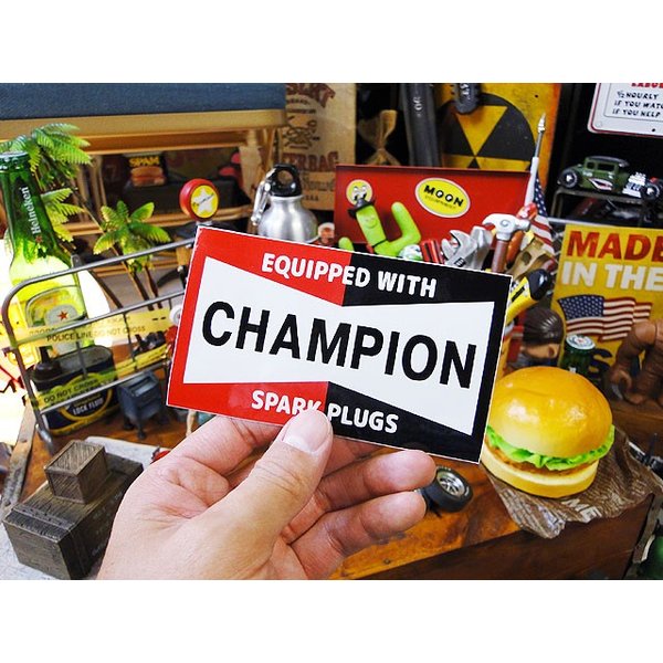 100年以上も前に誕生した歴史あるスパークプラグメーカーがこのチャンピオン!あのT型フォードにも使われたというのが、その歴史の深さを感じさせてくれます。世界中のレースシーンでもプラグと言えばチャンピオンというくらい世界中で愛されているブランドだけに、レースカーなんかにもよく貼られています。外国らしく決めたいなら、このデザインはイチオシです!サイズ:横12cm×縦7cm(約)