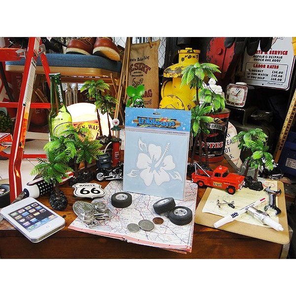 そこに自分の好きなハワイのラッキーアニマルだったり、サーフィンだったり、星条旗なんかを組み合わせて貼るのがこの3Dカットアウトステッカーの楽しみ方なんです。