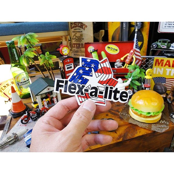 星条旗が入ってるって欲しくなっちゃうね!クーリングファンやラジエターなどで有名なブランド、フレック・ア・ライトのレーシングステッカーです。見るからにアメリカンな雰囲気が伝わってくるところがこのロゴの最大の魅力です。同社のクーリングファンをモチーフにしたロゴを星条旗でデザインして派手にアピールするあたり、アメリカ人らしさを感じれて好き。まさにアメリカっぽさが欲しい場所にこのロゴをバシッと貼れば問題解決!一瞬でアメリカンにしてくれますよ!(o ̄∇ ̄)oサイズ:横10.5cm×縦7cm(約)