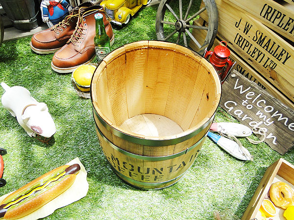 上にモノを置きたい方は、木樽をひっくり返すか、フタをどうぞ!