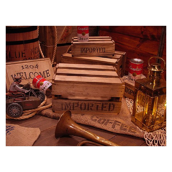 それからいくつか積み重ねて置くとショップの雰囲気を再現!と使い方と演出アイデアでいろいろできる万能木箱です。