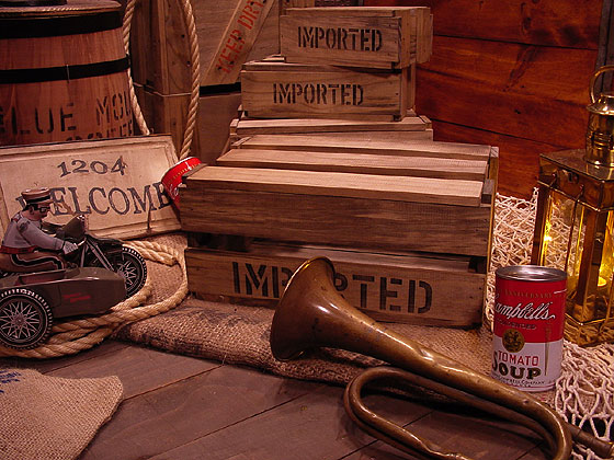それからいくつか積み重ねて置くとショップの雰囲気を再現!と使い方と演出アイデアでいろいろできる万能木箱です。