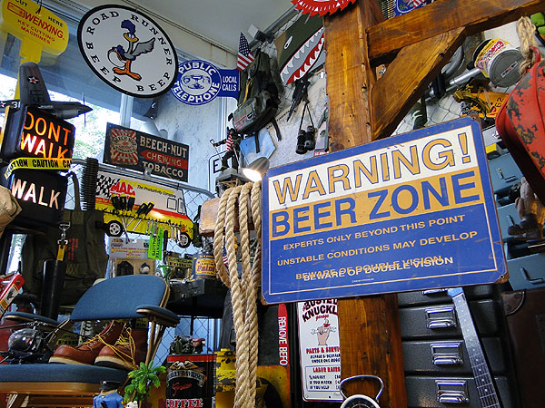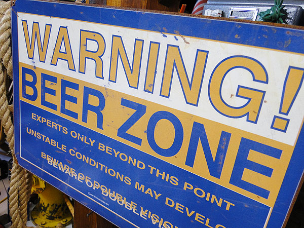 「警告!ここから先はビールゾーンにつき、上級者のみとする。気分の優れない人はやめて下さい。物がぼやけて見るなど焦点が合わない人は気をつけてください。」なーんて飲兵衛の集まりをアピールする禁断のゾーンを作れちゃうというジョーク看板です。