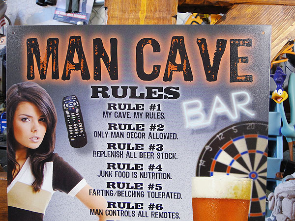 アメリカでは「MAN CAVE」は「男の隠れ家」みたいな意味で使われるスラングなんだけど、その男の秘密基地でのオキテ(ルール)を明記したユニークなデザインがこの1枚なんです。