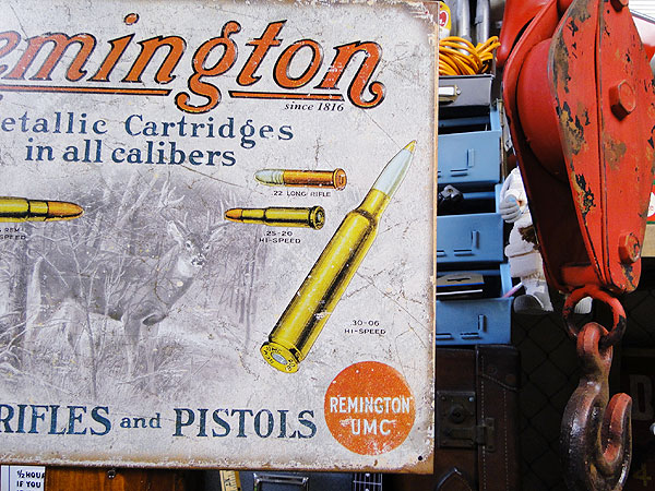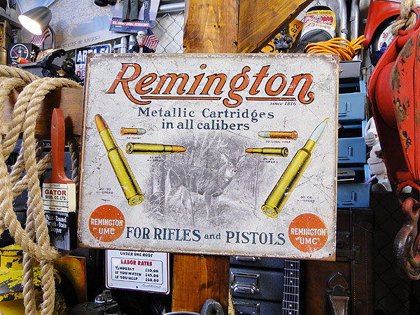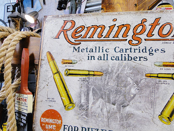 猟銃で有名なレミントン社から弾丸をデザインしたアドバタイジング広告がブリキ看板になってリリースされました。
