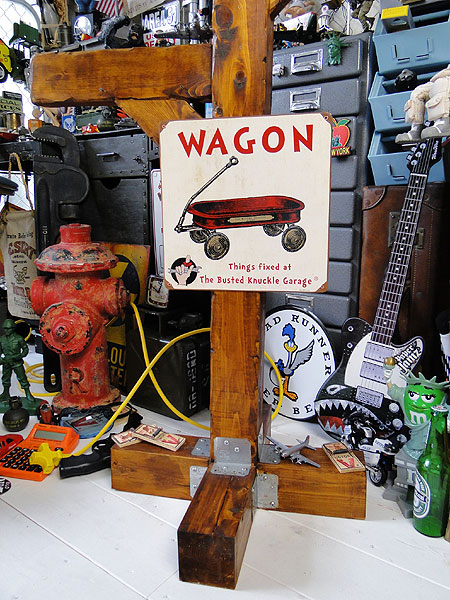 バステッドナックルガレージ 標識タイプ U.S.ヘヴィースチールサイン (レッドワゴン)