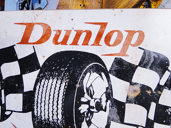 そんな歴史を感じさせてくれるヴィンテージ加工が施されたイギリス生まれのタイヤメーカー、ダンロップの看板です。