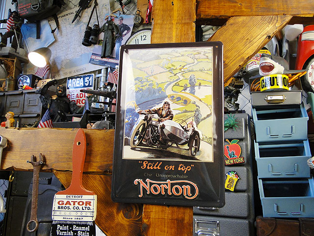 世界のオートバイ 3Dメタルサイン (ノートン/サイドカー)
