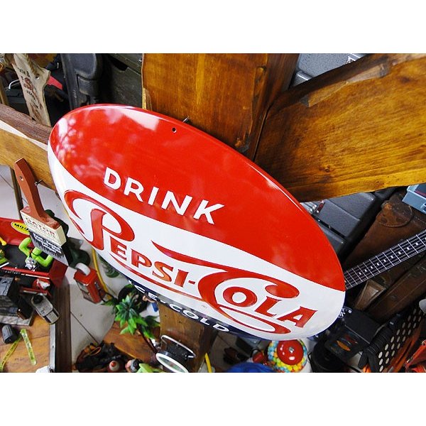 1950年代のペプシボトルに付いていたロゴをそのままデザインにしたというエンボスティンサインがこちら!
