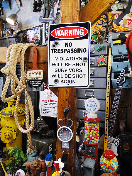 「警告!このエリアは進入禁止」 「もし違反したヤツがいたら容赦なく銃で撃ってやるからな!」 「生きてたら必ずとどめを刺すぞ!」 なーんてメチャクチャなことを書いてあるワーニング系のジョーク看板です。 アメリカの基地や工場なんかで見かけるワーニング看板がモチーフになってるので、秘密基地系のディスプレイをしたい人ならこの看板はドアプレートなんかにして飾るとおもしろいんじゃない! o(`▽´)o サイズ:横20cm×縦30cm(約)
