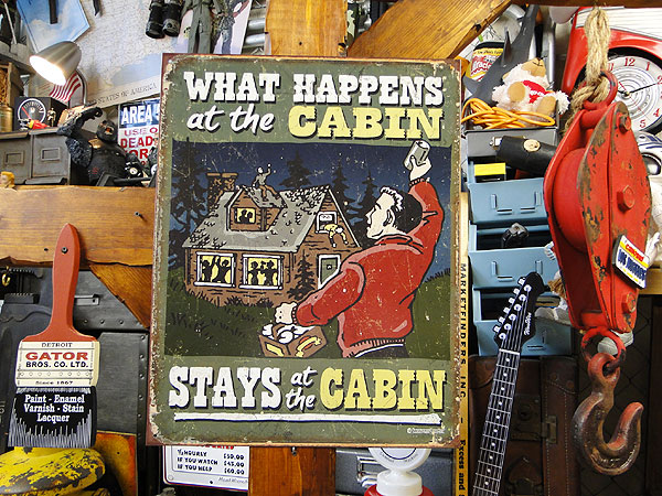 看板にはアンティーク加工がされているので、買ってすぐにヴィンテージ看板の雰囲気を楽しめちゃうのも魅力です。キャンプ用品や釣り道具と一緒に山小屋をディスプレイして楽しんじゃえ!(o ̄∇ ̄)o