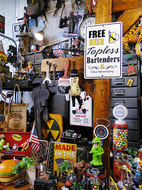 「ビール無料&トップレスバーテンダー&誇大広告アリ」 ミニジョーク看板