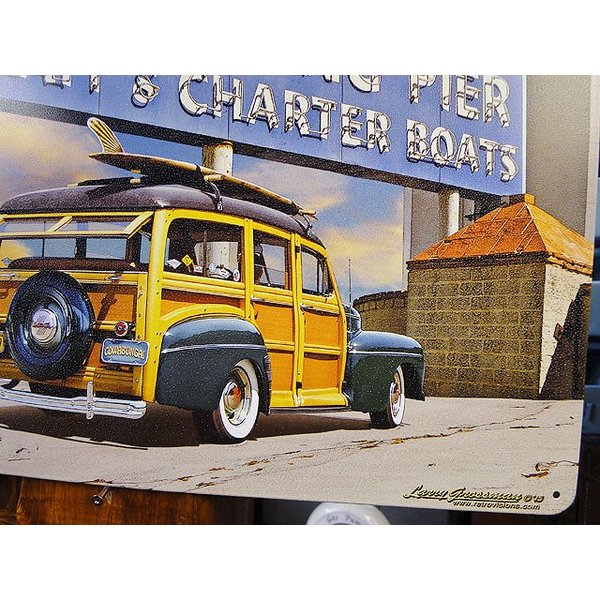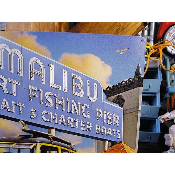 有名ミュージシャンや映画スターなどセレブ達がこぞって住む町マリブの有名な看板をバックにウッディワゴンを並べてサンセットシーンを描いた1枚。