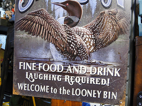 ハンティングやキャンプをテーマにした看板なので、水渡り鳥のアビ(ルーン)が主役になっているんだけど、よく見るとそのルーンににクレイジーを掛けてあるので、スラング用語の「ルーン=バカ」って意味を込めて名付けたジョーク看板なんです。