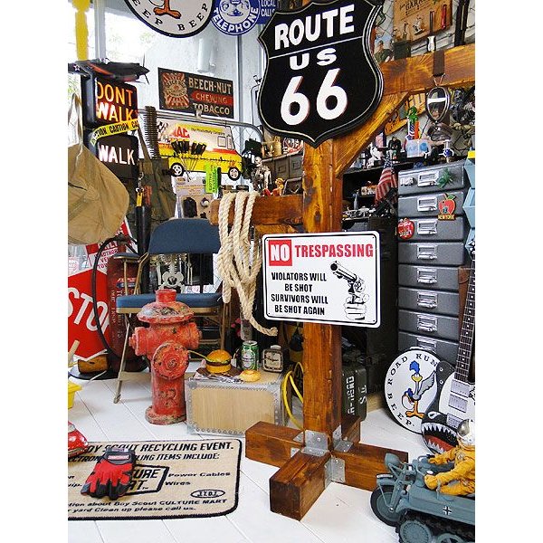 アメリカのホームセンターに行くとどこでも売ってるアメリカ人にはごく当たり前のサインボード!だけどボクら日本人にとってはそんな彼らの日常こそが特別なんだよね!そんなわけではるばるアメリカから運んできました!アメリカのプラスチック製のサインボードです。アメリカ人が生活の中で普通に目にするホンチャンのサインだけに、どれも実用的なフレーズばかり!日本語で思いっきり「駐車禁止」とか「危ない!」なんて書いちゃうとムードがブチ壊れちゃうという場合にこの英語バージョンがカッコイイのね!そんな実用的な使い方から、自分の部屋を軍施設っぽく演出したいなんて時にはインテリアとして使うってのも手!とにかく飾りつけた瞬間からそこにリアルなアメリカを運んできてくれます。ガレージ周りはもちろん、部屋のドアや廊下なんかもアメリカのストリートに見立てて演出しても楽しいんじゃない!想像力を駆使して、自分だけのアメリカンワールドを再現しちゃえ!(≧∀≦)/