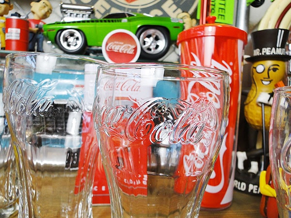 「暗闇で触ってもそれがコカ・コーラだとわかる」をコンセプトにデザインされたこの形状は、グラスになっても抜群に握り心地がイイと評判なんです。
