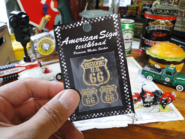 アメリカ好きにとっては永遠の憧れの象徴とも呼べるルート66をテーマにデザインされたステッカーがリリースされました!このシール、転写タイプのシールになっていて、ケータイやiPod、ノートPCなどなど・・・・平らで硬質なものであれば何でも簡単に転写できるってシロモノなんです。シールって一言で言っても色んなタイプがあるわけですが、このシールは我らが日本の職人さんがその匠の技術をつぎ込んだ「技」のシールなんです。仕上がりの色合い、そして最もその技を感じれるのは、手で触った時に確かに感じるボコッと浮き出た立体感!試しに携帯に転写してみると、その高級感をヒシヒシと実感できました。シール一つで感じさせてくれる「メイド・イン・ジャパン」のスゴさを確実に体験できます。ボクらの永遠の憧れのルート66を身近なモノに貼りつけて持ち歩く・・・・んーそういうのってまさにボクらが求めてる感じ!オリジナルグッズ作りの楽しさをとことん味わわせてくれる男心くすぶるステッカーです。( ̄ー ̄)ニヤリ☆
