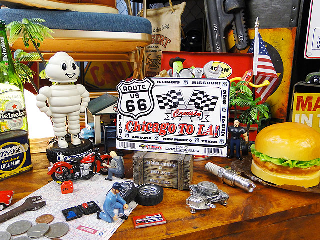 向こうのルート66沿いのギフトショップに並んでるスーベニアアイテムで、普通なら現地に行くしか入手できないようなグッズなんだけど、それを向こうから持ってきました!
