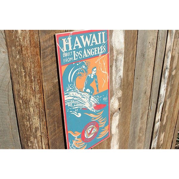 昔のアドバタイジング ハワイアンウッドサイン (ビッグウェーブサーファー)
