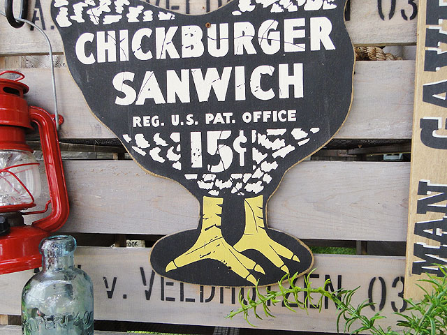 昔のアドバタイジング ウッドサイン (チックバーガー)