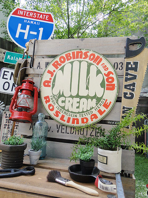 キャンディタワーではすっかりとおなじみになったウッド看板シリーズ、今回は昔のジェネラルストアに飾られてそうなミルク系の看板です。