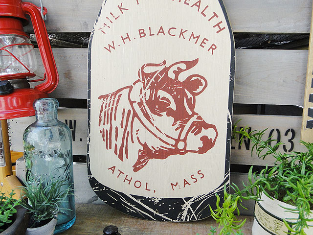 昔のアドバタイジング ウッドサイン (ミルクボトル カウ)