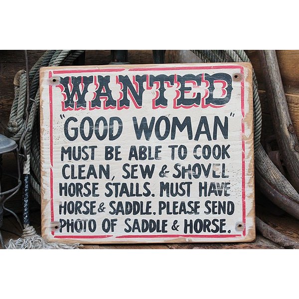 「いい女求む!」なんて見出しで始まってて、よーく読んでみると「料理と縫い物ができて、馬小屋の世話できる人。それから馬とサドルは必須だからね!そうそう、馬とサドルの写真は忘れないで送ってね!」だって。