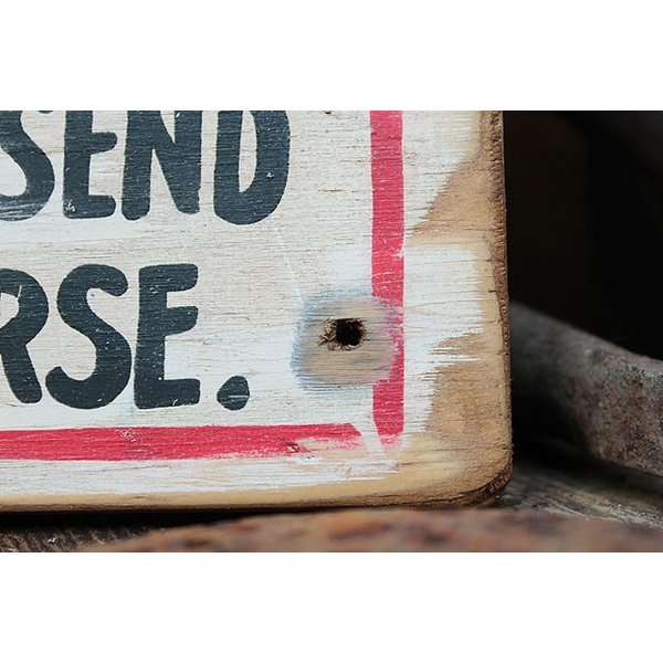 長年使い込まれた感じがひしひしと伝わってくるオールドフィニッシュ加工がされていて古めかしいサインに仕上げられています。