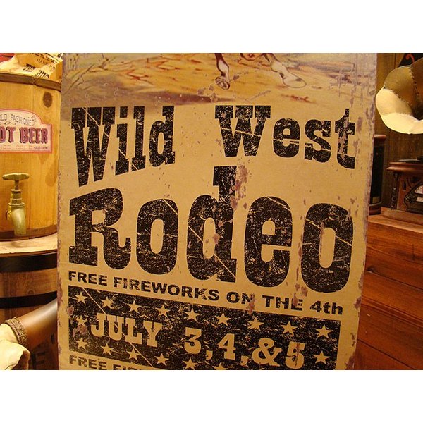 地元で開催されるロデオ大会の案内看板を再現したウエスタン好きにはたまらないサインがコレ!