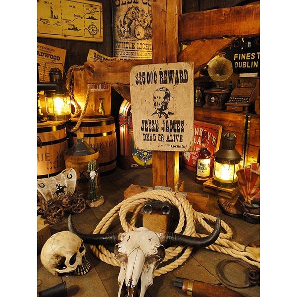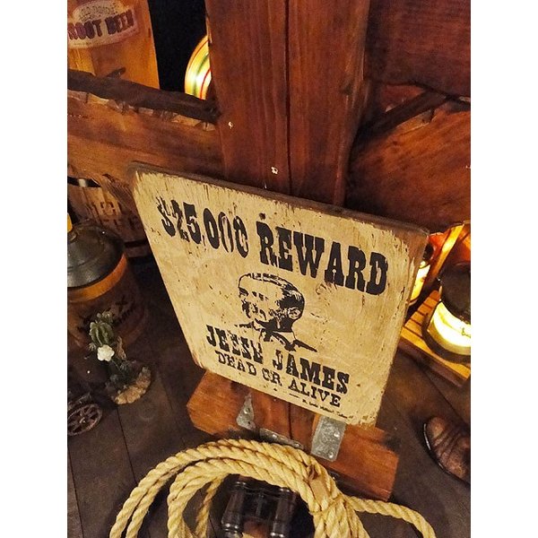 西部のお尋ね者ポスター 木製看板 (ジェシージェームズ)